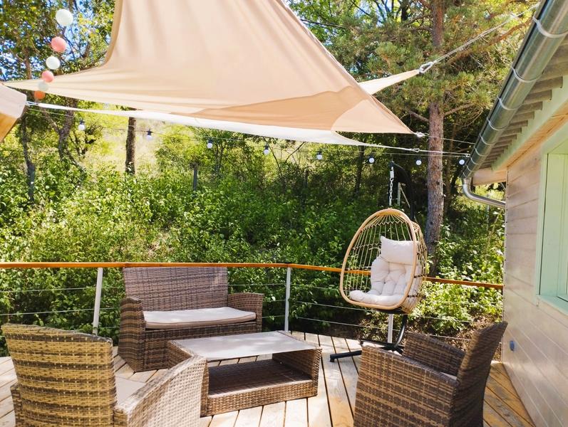 Un grand salon de jardin commun offre la possibilité de partager un moment convivial au retour de randonnée.